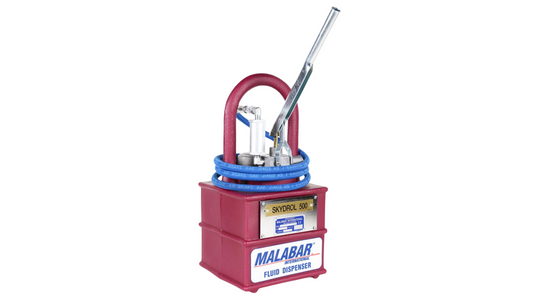 The Malabar Model 260 Skydrol or HyJet IV Dispenser is a 2 gallon fluid dispenser used to service various commercial aircraft hydraulic systems. The hand pump dispenser consists of a reservoir, pump assembly, filter assembly and a fluid delivery hose.