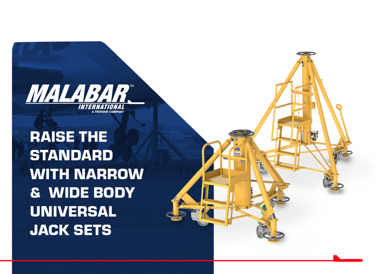 Malabar offers a wide variety of tripod and axle jacks, fluid dispensers, B787 and A350 coolant service equipment, N2, O2 and strut service carts, wheel/brake changers, specialized service trailers, and repair and refurbishment services.