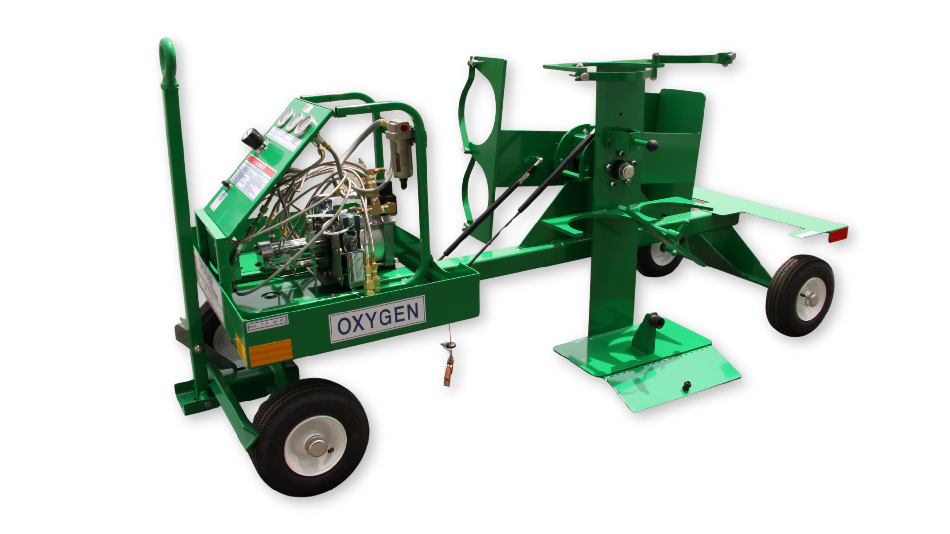 - Holds 3 oxygen cylinders (up to 9" diameter, 56" tall, 150 lbs; CGA 540 with check valves, max 2900 psi)