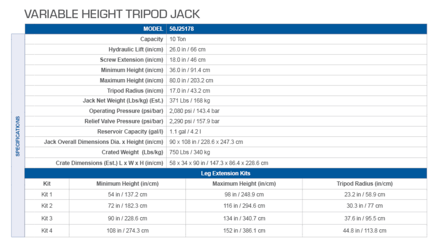 - 50J25178 Tripod Jack Specification Sheet