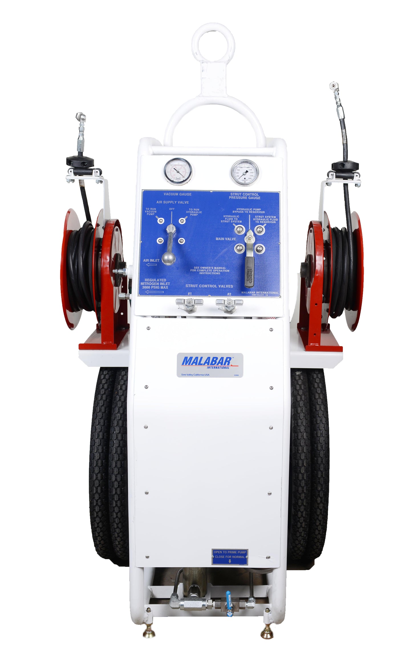 - Two 25 foot service hoses with strut safety chucks mounted on hose racks